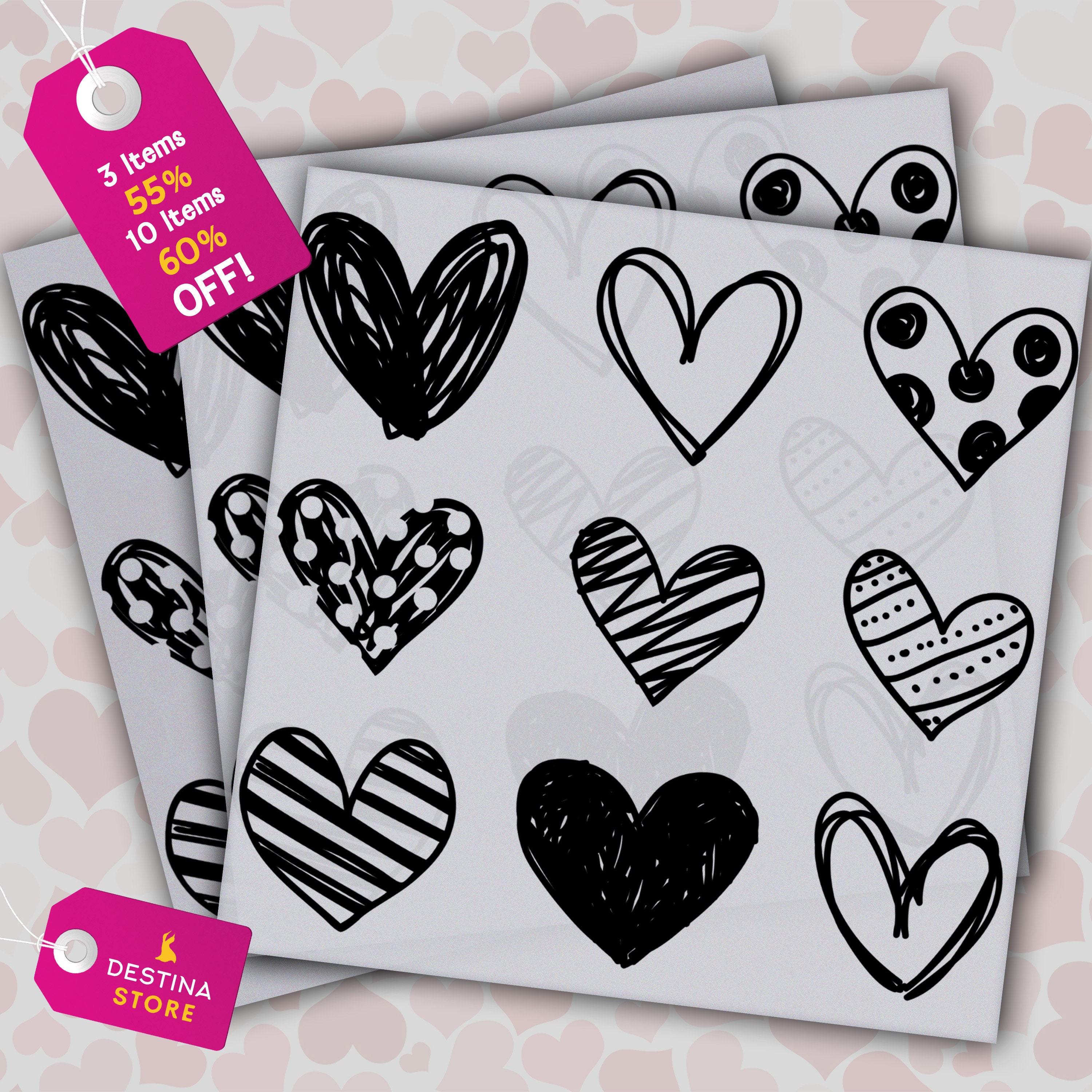 Hearts Ready to Press, Hand Drawn Valentines DTF, Valentine Vibes, DTF prints, Heat Press Transfer, Ready For Press