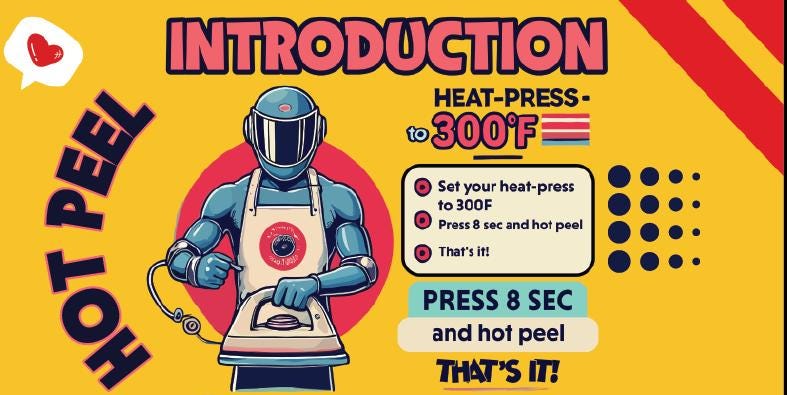 *Peel it off immediately while it’s still hot. It’s important to peel it right away—if you let it cool down, the transfer won’t work properly. This method is called Hot Peel Film.Care Instructions: Turn the garment inside out. Machine wash cold. No bleach. No softener. Do not dry clean or iron. Tumble dry low.